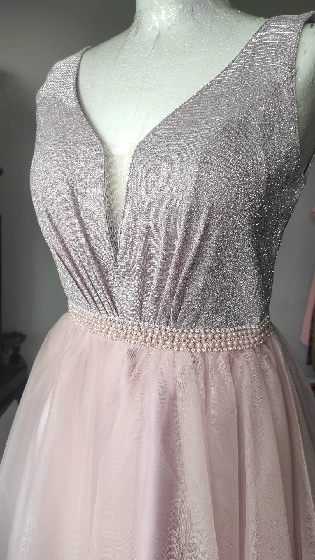 podszewce. Zapinana na zamek z tyłu .Pasek zamocowany na talii,zrobiony z koralików.
