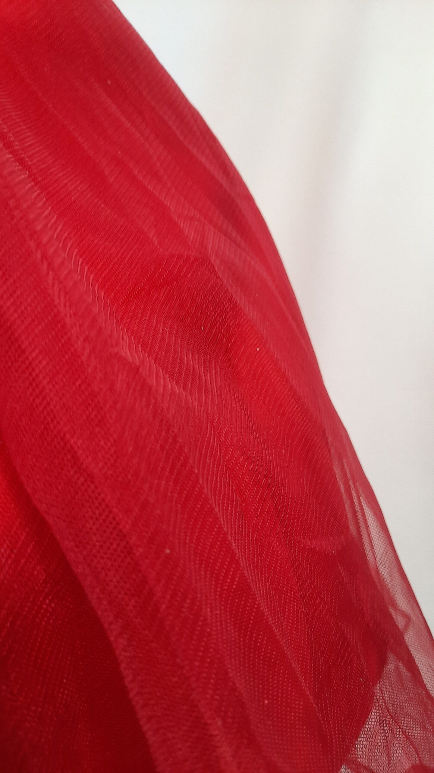 Sukienka podkreśla biust i talię ma głęboki dekolt jak z przodu tak i z tyłu, spódnica lekka puszysta z dwuwarstwowego tiulu na podszewce. Talia sukienki z przodu wykończona sztucznymi koralikami dodaję bogaty wygląd.
